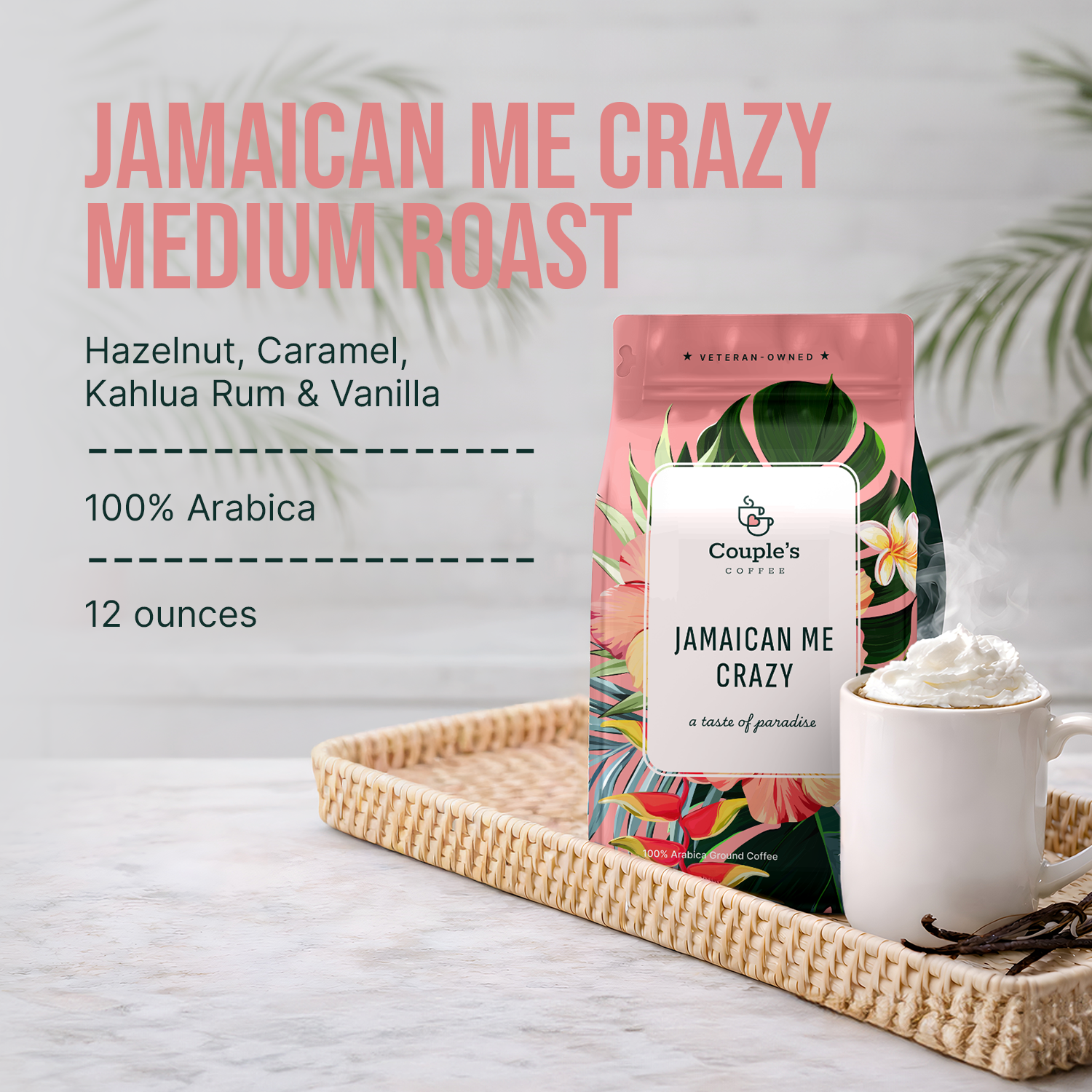 Couple’s Coffee Ground Coffee | Gives Back to Military Families - Jamaican Me Crazy | Vanilla, Caramel, and Rum Flavored Coffee | Made with 100% Arabica Beans | 12oz bag brews about 34 cups